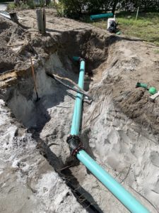 This approximately $1 million project consisted of the installation of approximately 5,500 feet of 8-inch water main and 9,200 feet of 2- to 6-inch force main in the Indian River Drive area of Jensen Beach, Florida. The existing water main was 30 – 40 years old and was constructed of cast iron. The force main consisted primarily of cast iron pipes that ranged in size from 2 inches to 6 inches. Both the water main and force main were undersized for the amount of traffic in the neighborhood. Force main is a type of piping that brings water from the main line to individual buildings (as opposed to a sprinkler system) or to another part of the main line.